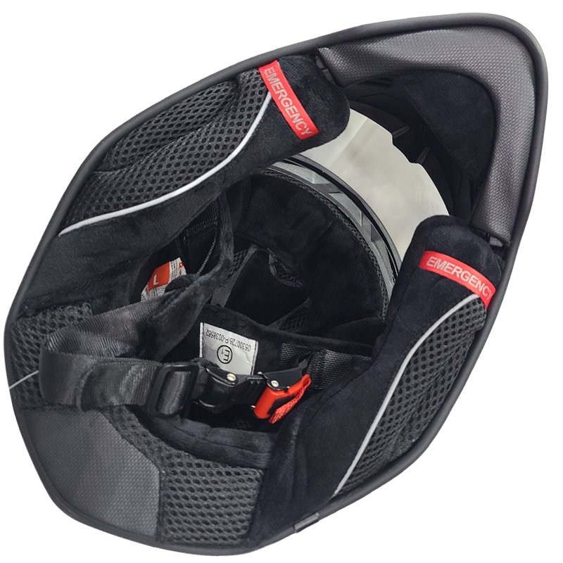 • En el interior cuenta con deflector nasal que ayuda a disminuir el empañamiento, mentonera para disminuir el ruido y el material particulado que entra al casco e interior removible y lavable fabricado con telas hipoalergénicas.
