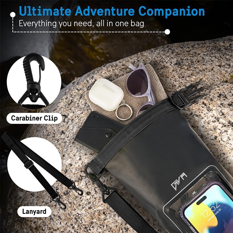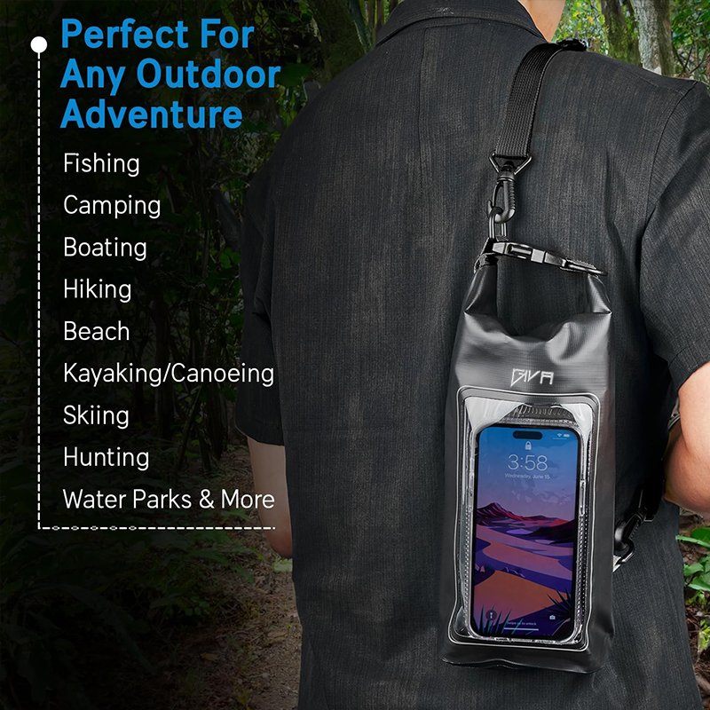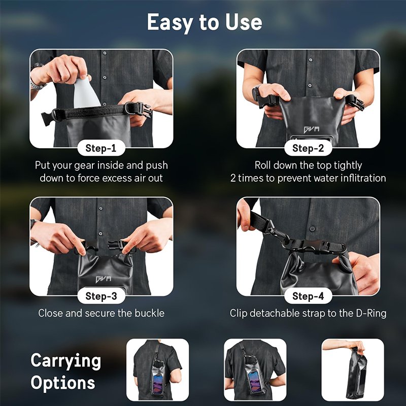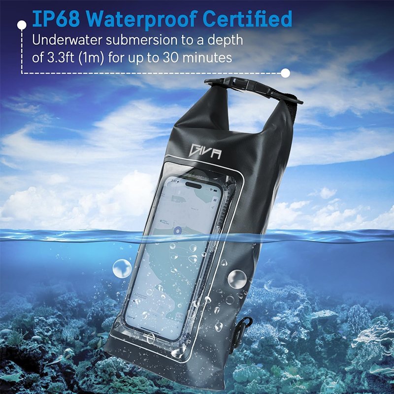 • Certificado IPX6 resistente al agua: Con un excelente rendimiento de sellado resistente al agua (clasificación IPX6), esta bolsa 100% sellada resistente al agua proporciona una protección completa para dispositivos en una variedad de entornos. Un cierre enrollable impermeable garantiza un sellado perfecto y mantiene fuera el agua, la nieve, el polvo, la arena y la suciedad.