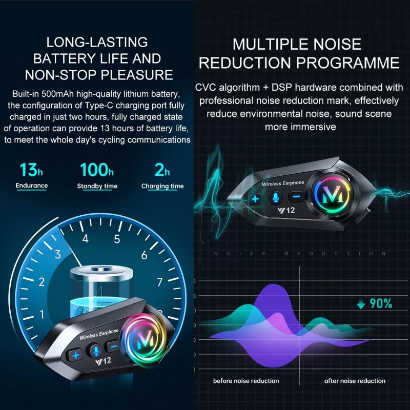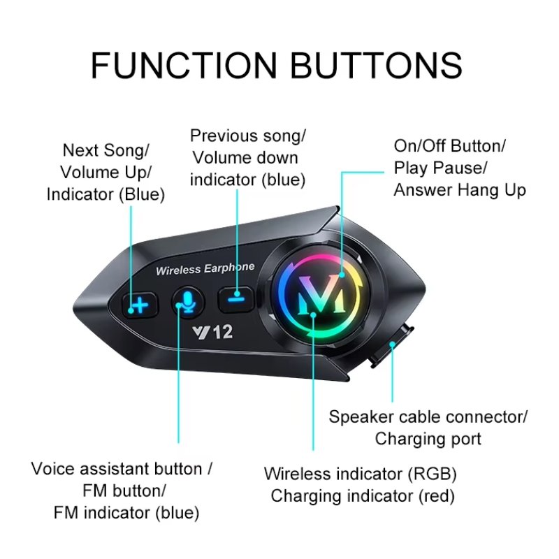 • El auricular Bluetooth Y12 es la opción perfecta para los amantes de la motocicleta que buscan una experiencia de comunicación inigualable mientras disfrutan de la carretera. Su diseño ergonómico y elegante en color negro asegura comodidad durante largas horas de uso. Con una impresionante autonomía de batería de hasta 13 horas, podrás mantenerte conectado sin preocuparte por la carga constante.