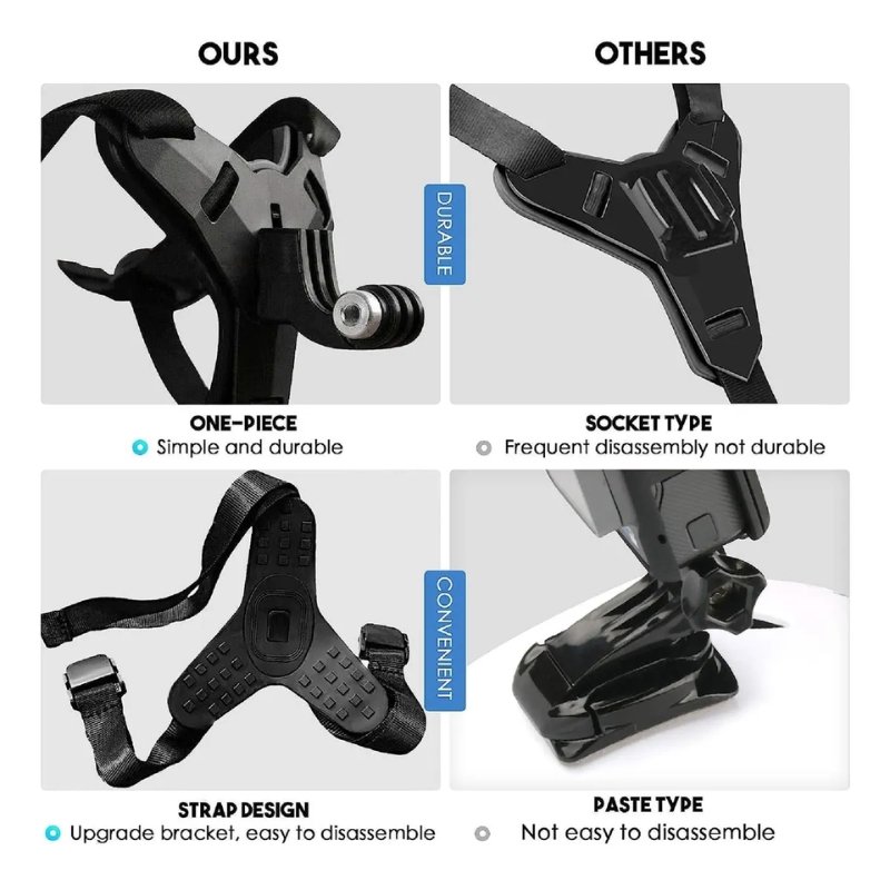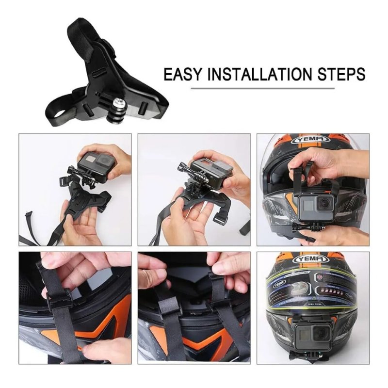 • Fácil de instalar: El soporte de barbilla para casco es de una sola pieza, simple y duradero. El diseño a presión del soporte para casco de la cámara es fácil de instalar y quitar. Simplemente pase las correas a través de las aberturas del casco y asegúrelas.